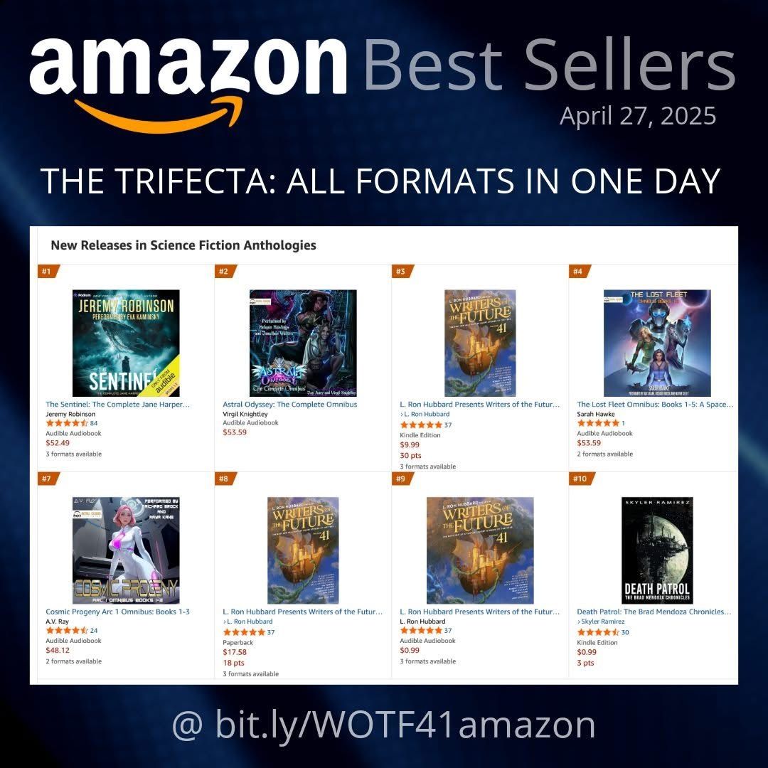 WOTF41 has done, as far as I can tell, very well since its release in the US and Canada in April. It was a #1 Amazon bestseller in SF Anthologies, as well as being a Top 10 Amazon bestseller in SF Anthologies in all three formats at the same time (paperback, audiobook and ebook), which is quite the achievement. Itβs a bit bonkers to think I have an Amazon bestselling book!